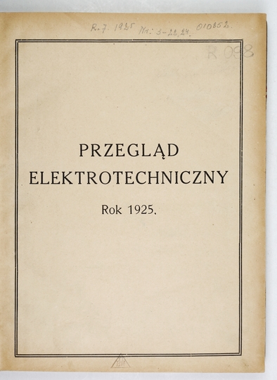 R. 7, z. 3-22, 24. 1925. Warszawa. Wydawca w z. Sp. z ogr. odp. Inżynier R. Podoski. Red. M. Pożaryski. 4, s. 7, [33]-404, [421]-436, tabl. 10. opr. późn. ppł.