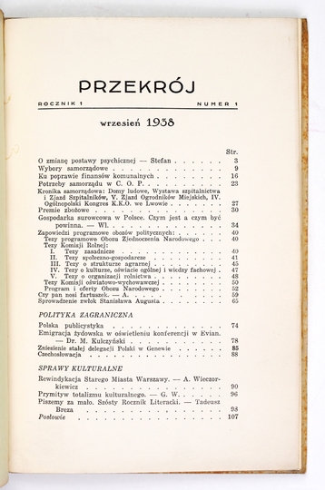 PRZEKRÓJ. Miesięcznik poświęcony sprawom Polski. Warszawa. Red. J. Horzelski. 8. brosz.