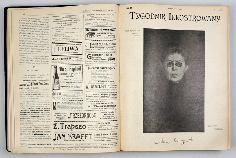 [R. 43], półrocze 2, nr 27 -52: 5 VII (24 VI) 1902-27 (14) XII 1902. Warszawa. Spadkobiercy Gebethnera i R. Wolff. Red. Józef Wolff. s. 1036, [2]. razem opr. pł. z epoki.