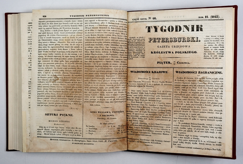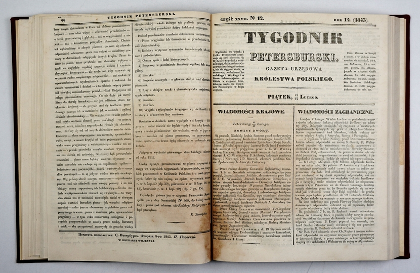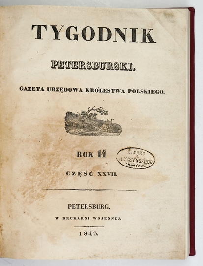 TYGODNIK Petersburski. Gazeta urzędowa Królestwa Polskiego. Petersburg. W Druk. Wojennej. 4. opr. wsp. pł.