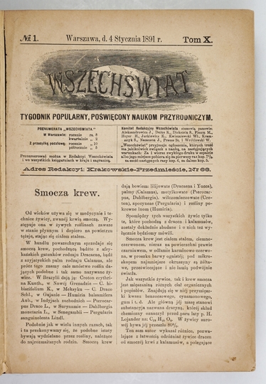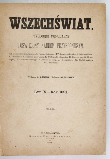 WSZECHŚWIAT. Tygodnik popularny poświęcony naukom przyrodniczym pod kierunkiem Komitetu red. złożonego z J. Aleksandrowicza [...], K. Jurkiewicza [...], K. Deikego [...]