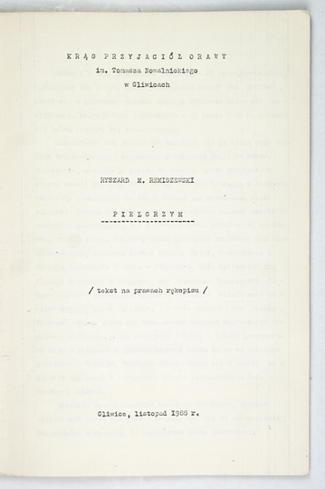 WYŻKA. Zapiski orawskie. [Nr] 6. Gliwice, XI 1988. Nakł. Kręgu Przyjaciół Orawy. 4, k. [2], 9, [4], tabl. 3. brosz.
