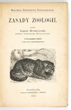 WRZEŚNIOWSKI August – Zasady zoologii. Z 499 rysunkami w tekście. Warszawa 1888. Nakł. Gebethnera i Wolffa. 8, s. [2], 475, [[1], IX, [2], opr. ppł. z epoki. Biblioteka Umiejętności przyrodniczych.