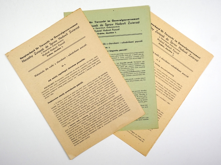 WSKAZÓWKI dla walki z chorobami i szkodnikami pszczół. Nr 1-3. Kraków [lata okupacji]. Hauptverband für Tierzucht im Generalgouvernement. Naczelny Związek do Spraw Hodowli Zwierząt w Generalnym Gubernatorstwie, Wydział Hodowli Pszczół. Agrarverlag. 4, s. [4]; [4]; [4]. brosz.