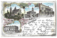 [JAROSŁAW]. Pozdrowienie z Jarosławia. K. u. k. Militär-Casino, Ratusz, Stacya kolejowa, Panny Marya [!].