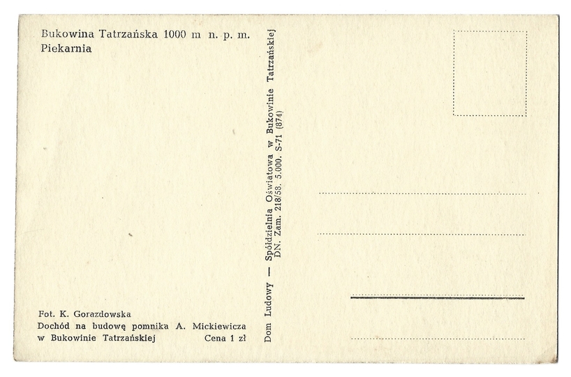 [BUKOWINA TATRZAŃSKA]. Bukowina Tatrzańska 1000 m n.p.m. Piekarnia.