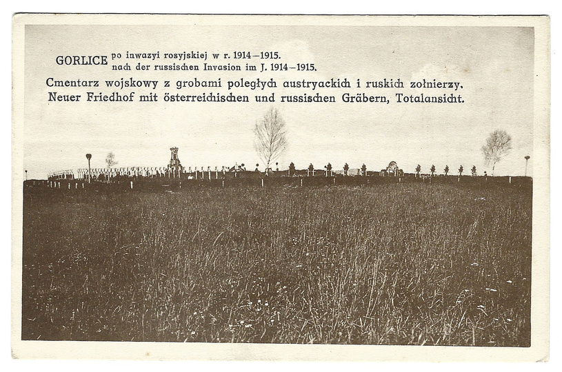 [GORLICE]. Gorlice po inwazyi rosyjskiej w r. 1914-1915. Cmentarz wojskowy z grobami poległych austryackich i ruskich żołnierzy.