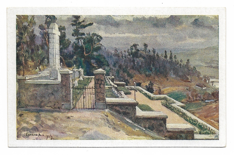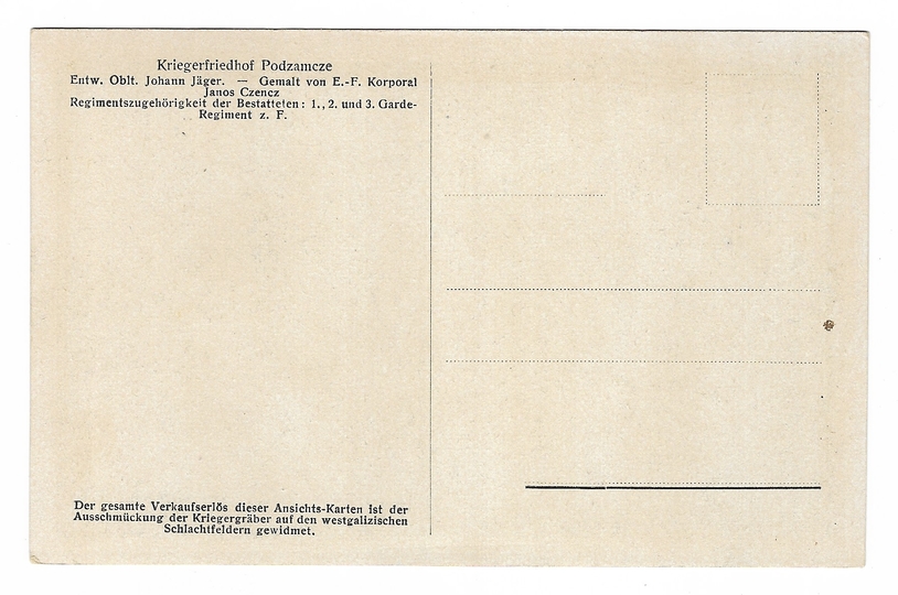 [JASŁO]. Kriegsfriedhof Podzamcze. Entw. Obit. Johann Jäger. - Gemalt von E.-F. Korporal Janos Czencz [...].