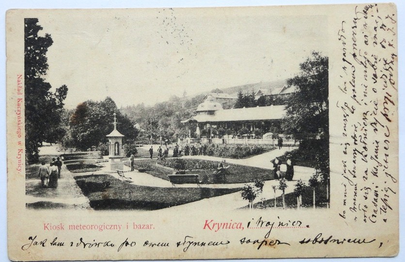 [KRYNICA]. Krynica. Kiosk meteorologiczny i bazar.