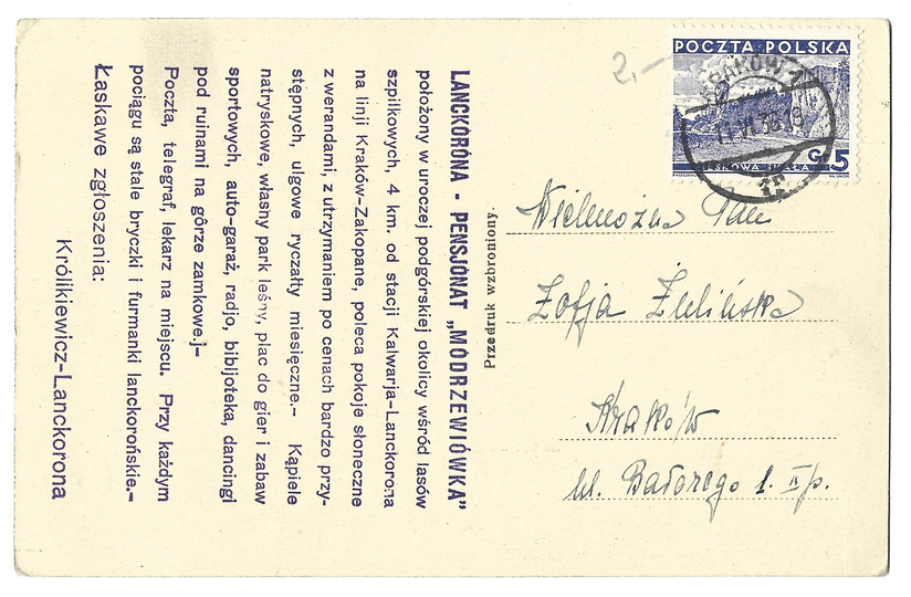 [LANCKORONA]. Lanckorona (550 m. n. p. m.) Willa "Modrzewiówka".