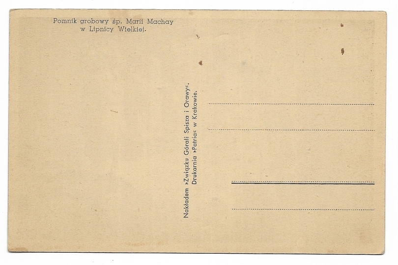 [LIPNICA WIELKA]. Pomnik grobowy śp. Marii Machay w Lipnicy Wielkiej.