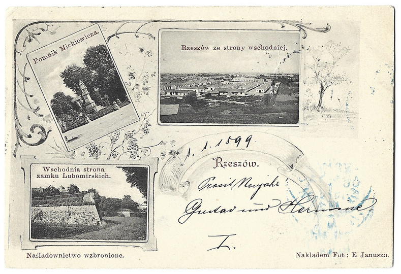 [RZESZÓW]. Rzeszów. Pomnik Mickiewicza, Rzeszów ze strony wschodniej, Wschodnia strona zamku Lubomirskich.