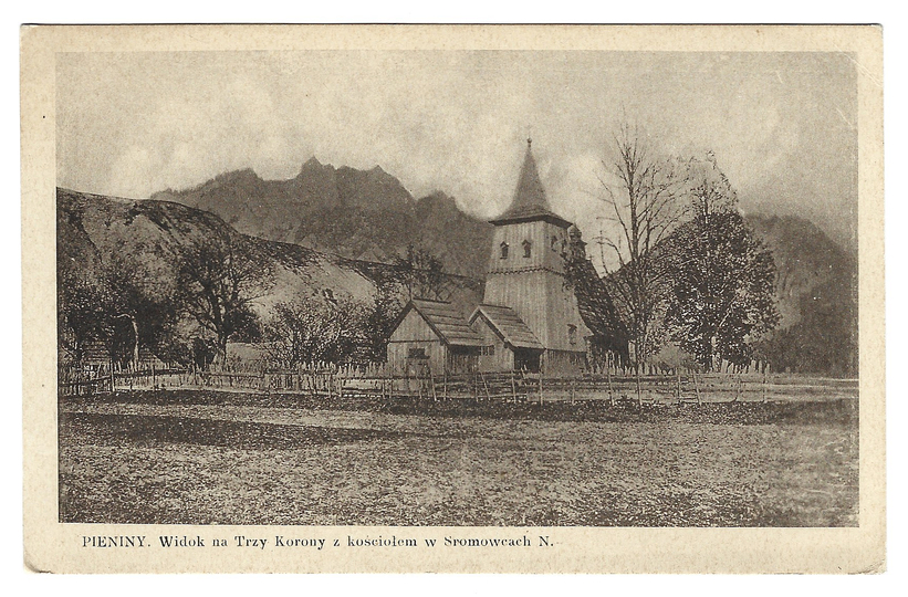 [SROMOWCE NIŻNE]. Pieniny. Widok na Trzy Korony z kościołem w Sromowcach N.