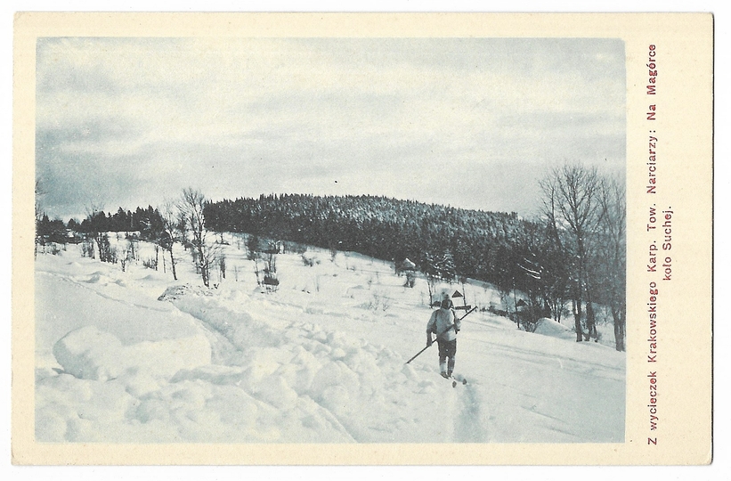 [SUCHA BESKIDZKA]. Z wycieczek Krakowskiego Karp. Tow. Narciarzy. Na Magórce koło Suchej.