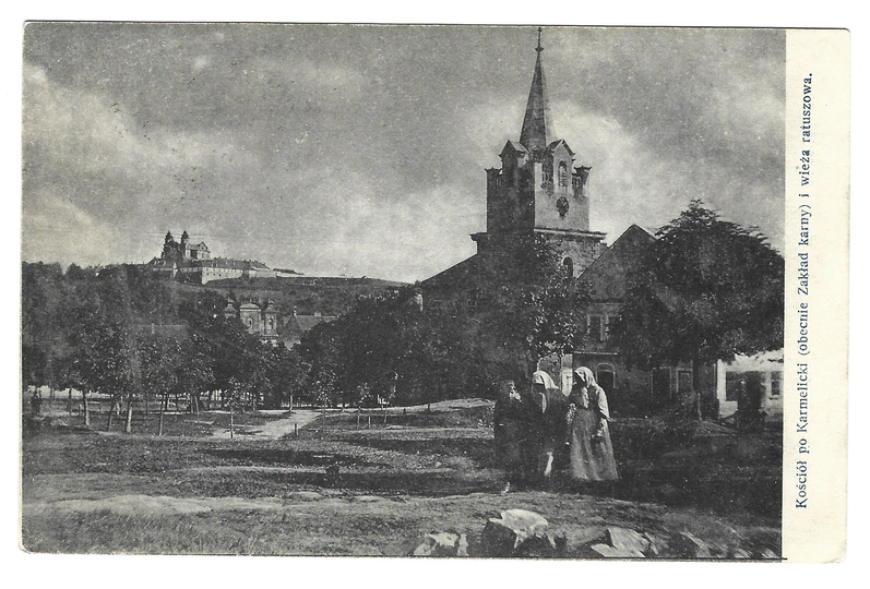 [WIŚNICZ]. Kościół po Karmelicki (obecnie zakład karny) i wieża ratuszowa.